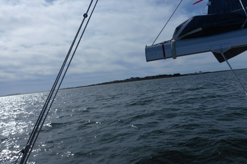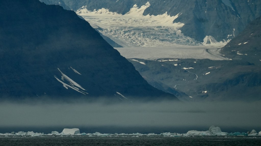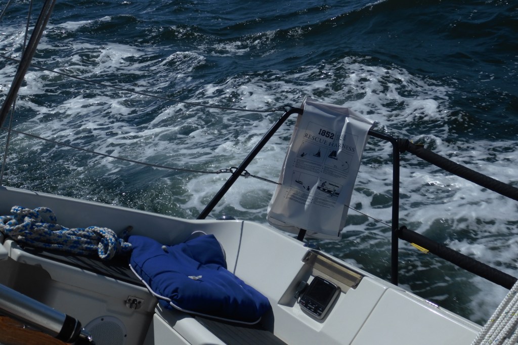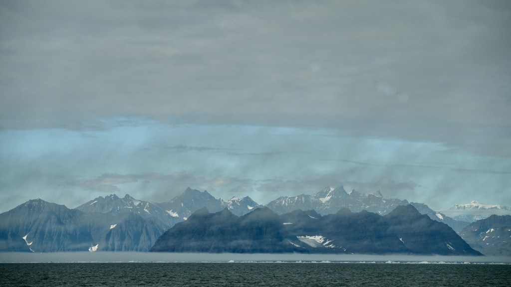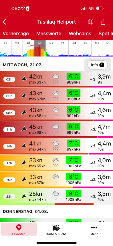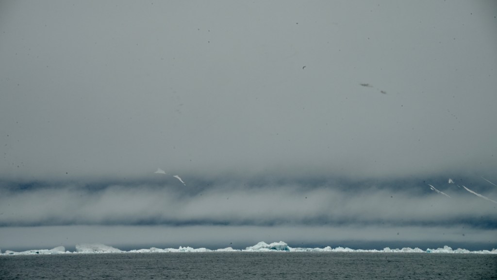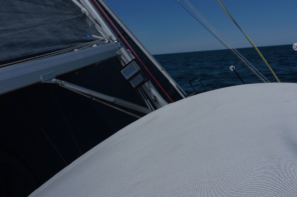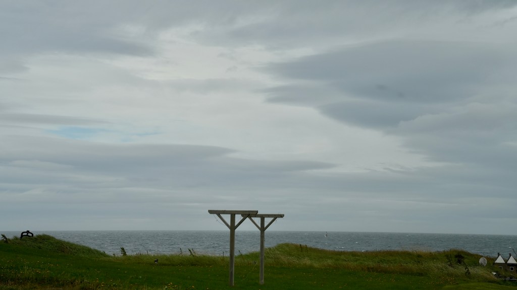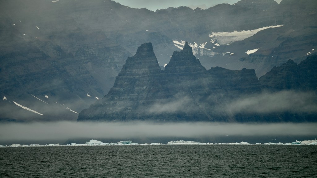 Next morning at 6am after an extra class concert of sleeping Hippos the ships bell got us out of bed. Quick morning wash, dive to the heads at the dock, breakfast and ready we were for the safety brief. Another good reminder of how to protect ourselves while sailing the boat sound and safe under all conditions to come. A reminder of skip made its round that it might be a good advice to take care of potential sea sickness now as we will be heading straight over to Greenland this night. Wind was predicted to be moderate but there would be the old sea from the storm of the last few days. Pills, plasters and what not got applied. Safety brief done. Water filled, sails prepped, own full of hot water, clothes on, watch on duty on deck and ready to slip lines. The departure was uneventful. The sky was still grey from the rain of the last day. We passed the dock of the inner harbor, turned 180 degree into the canal out to the open fjord. We passed another cruise liner as we said farewell to Isafjördur.