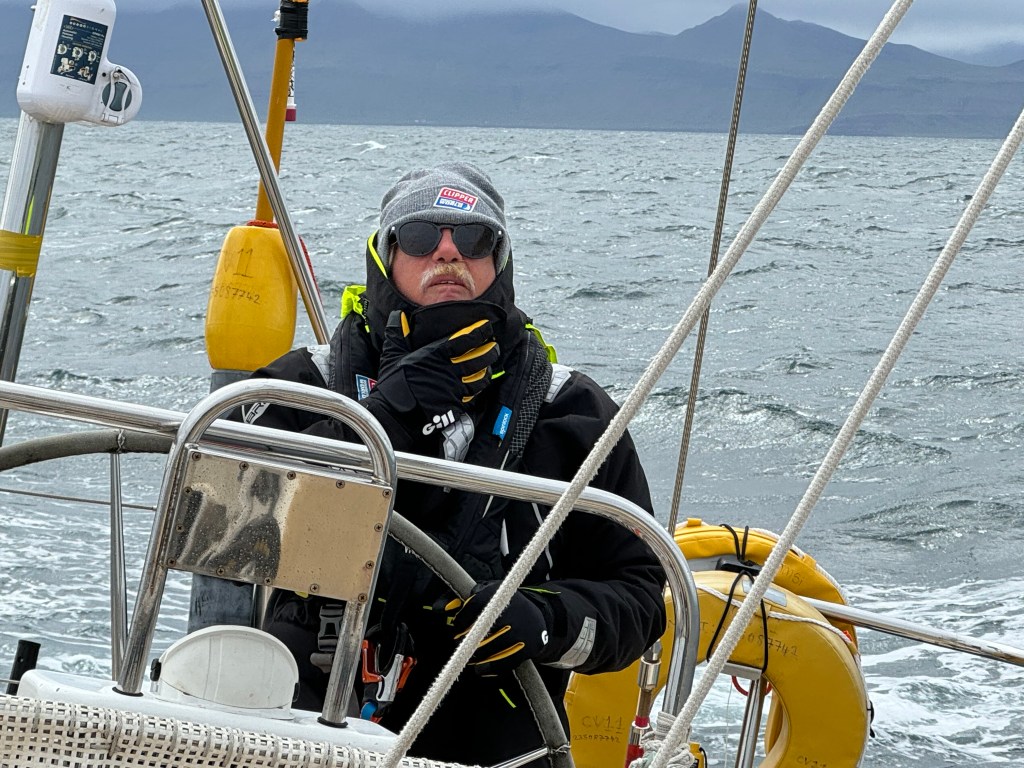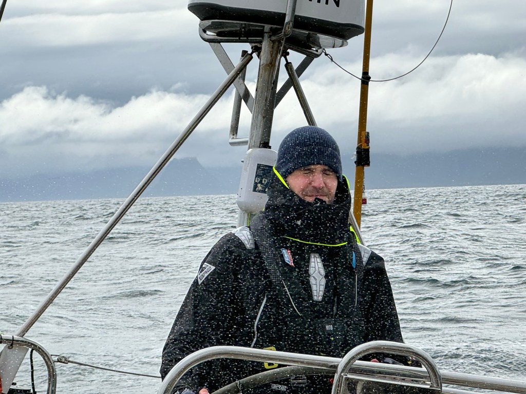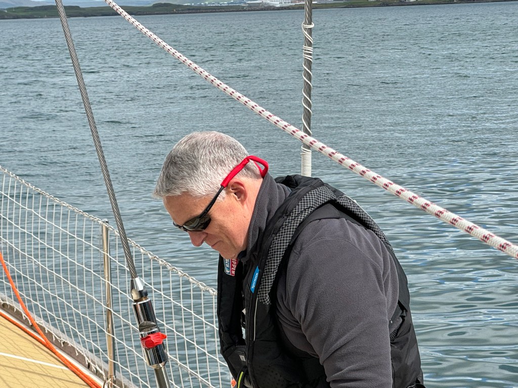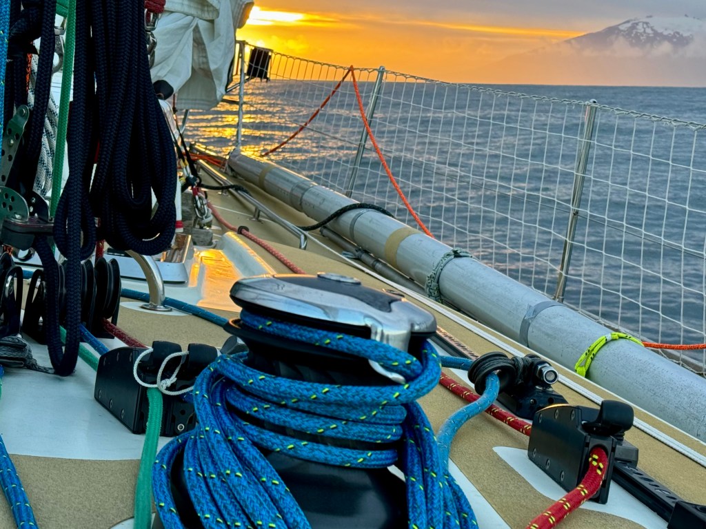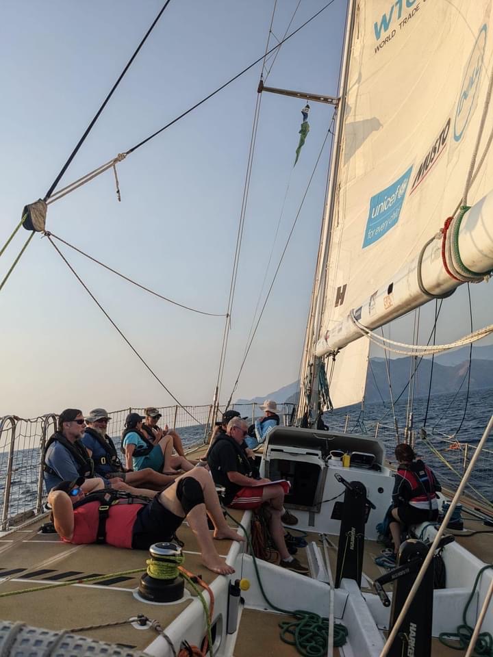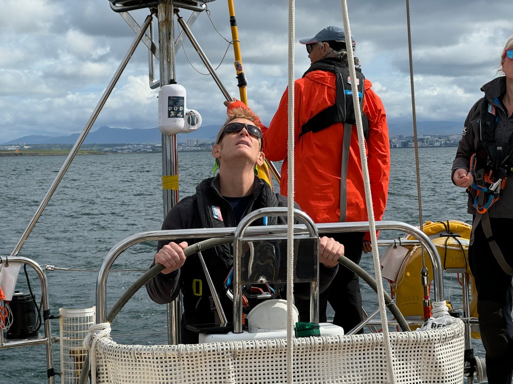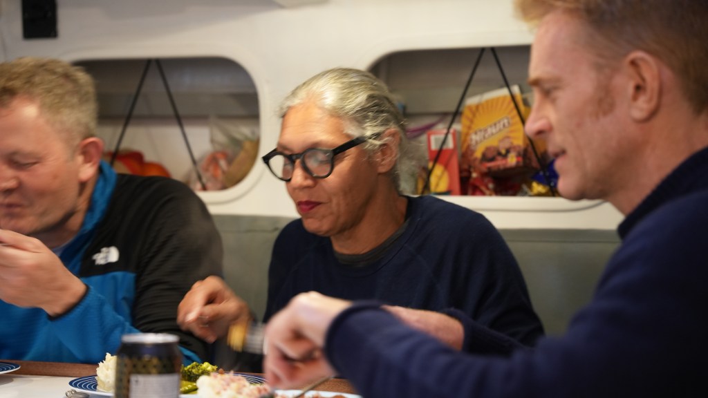 The briefing went seamless with the name and sailing introduction round. The 12 of us were Pam, Mel, Kaz, Karen, Maggie, Willie, Tom, Maxime, Stephen, Ian, Jose and me divided again into three watches this time of 4. We also had a new first mate as Sascha had to be replaced for a refit job at Clipper and it was Rachel, former WTC watch leader and winner of the Golden Globe Race crew on Maiden, this famous female driven racer. And with Wavy and Kitty it made us a crew of 15 crusaders. The Ghetto was open for bunk distribution, the collateral of SKIRR had been handed out. Skip had shared his plan to slip line at 14:00 next day when we headed out to the Husiet for crew dinner. It was awesome and first stories were shared about the endless experience that this crew gathered over the past. And expectations were voiced considering getting to sea tomorrow. I showed a few Berg pictures from the previous leg which fueled expectations. Skip took ma aside and asked to be careful as there might be bad weather, sea monsters and whatnot that might prevent us from seeing any ice. Aynway the fire was lit for Greenland. We were ready and headed back in peace with the world for our next adventure.