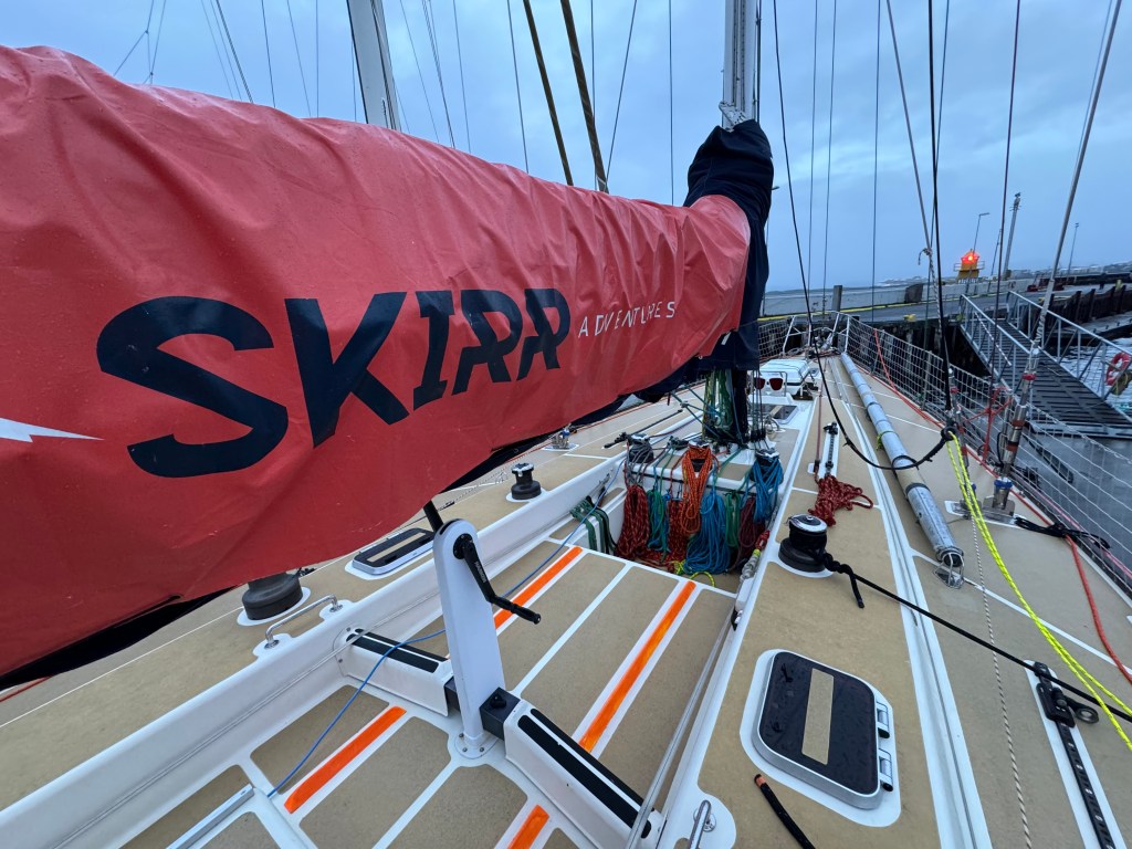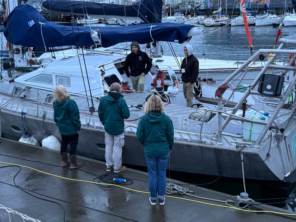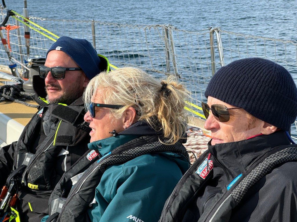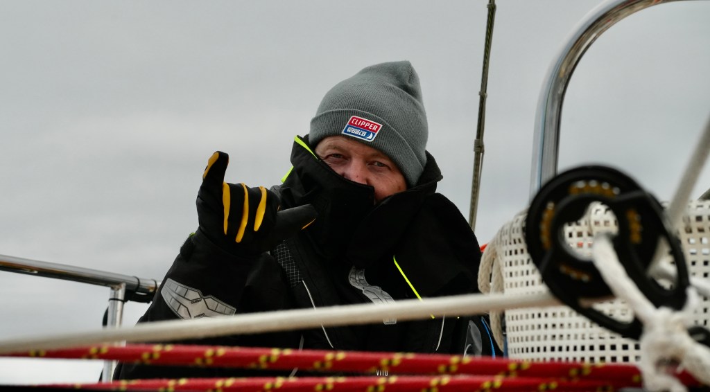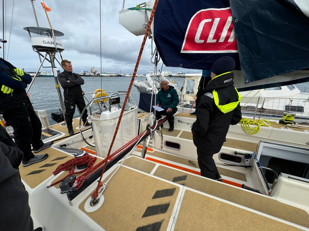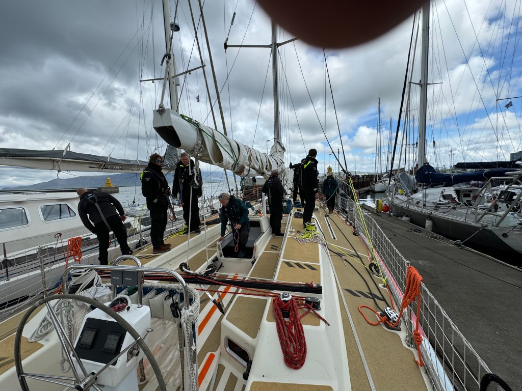 Around 6pm the new crew arrived. And our initial meeting point was the bar from the other night. A brief hello and it became obvious. A lot of Clipper trained crew this time and a kind of WT&C reunion were 4 out of 12 of us on this leg. After a quick pint we walked to the boat to have a brief introduction before heading out to crew dinner. Kitty was helping other on board because we had low tide and not a proper ladder to get on deck. And as she gave Mel a hand to jump over her new iPhone 15 went for a dive into the harbor. What a mess. We looked over the side but could not spot it. And with water temps at around 4 degrees diving without gear was not an option. Practical Wavy suggested that we would look for a rescue diver tomorrow. During the crew brief someone banged at the hull. It was a diver and he was happy to go in now. It was still bright outside. After 15 minutes or so the phone had been rescued and has been working ever since. Too bad that we could not trigger a photo as it was laying on the harbor bed.