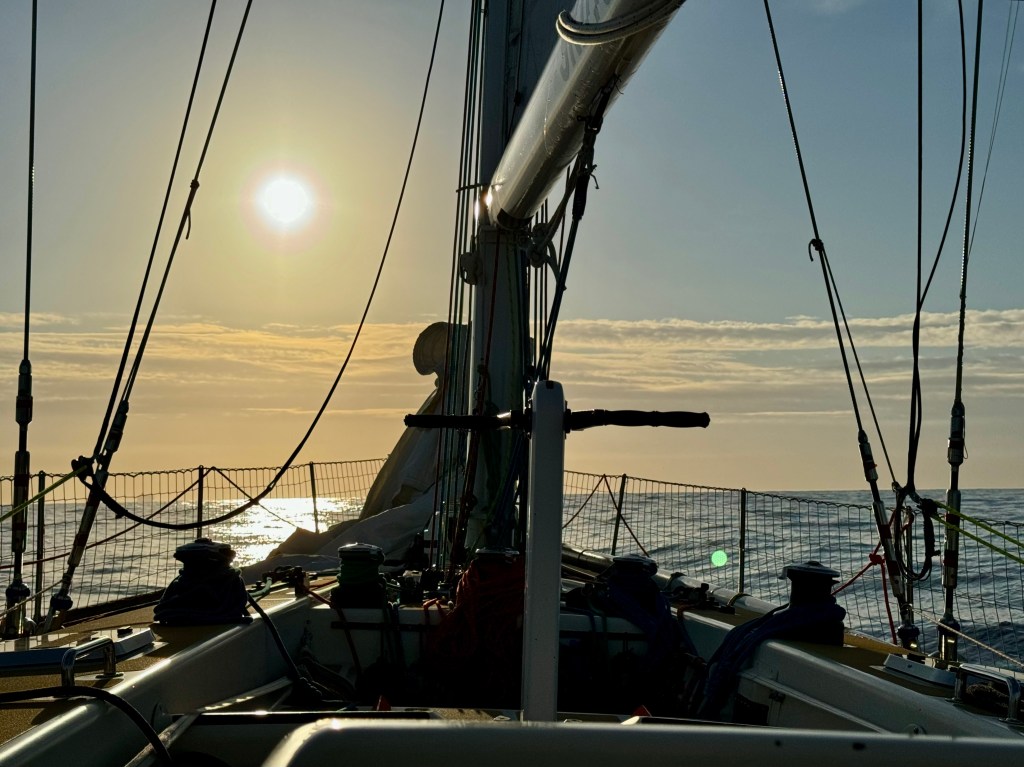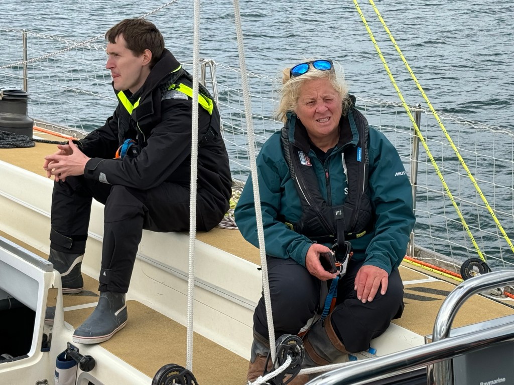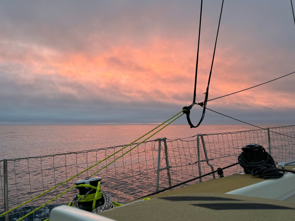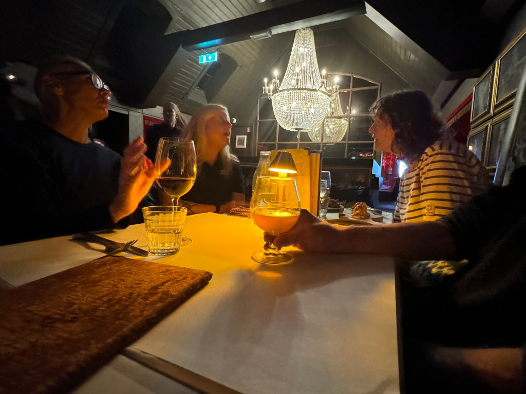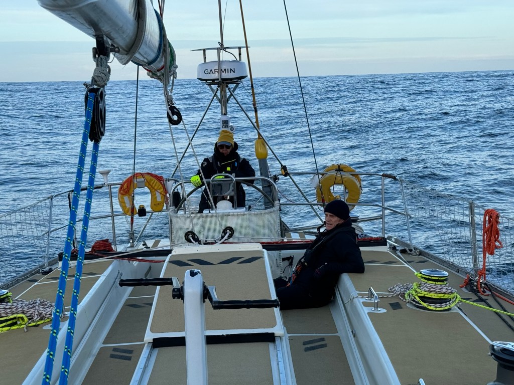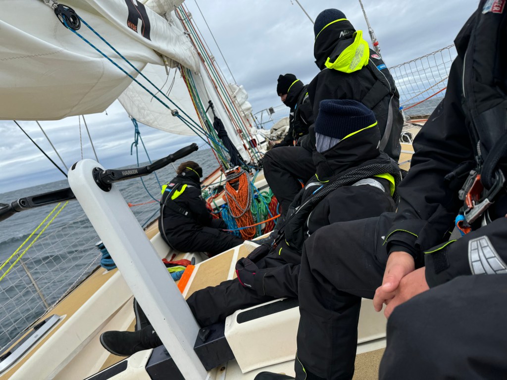 Around 6pm the new crew arrived. And our initial meeting point was the bar from the other night. A brief hello and it became obvious. A lot of Clipper trained crew this time and a kind of WT&C reunion were 4 out of 12 of us on this leg. After a quick pint we walked to the boat to have a brief introduction before heading out to crew dinner. Kitty was helping other on board because we had low tide and not a proper ladder to get on deck. And as she gave Mel a hand to jump over her new iPhone 15 went for a dive into the harbor. What a mess. We looked over the side but could not spot it. And with water temps at around 4 degrees diving without gear was not an option. Practical Wavy suggested that we would look for a rescue diver tomorrow. During the crew brief someone banged at the hull. It was a diver and he was happy to go in now. It was still bright outside. After 15 minutes or so the phone had been rescued and has been working ever since. Too bad that we could not trigger a photo as it was laying on the harbor bed.