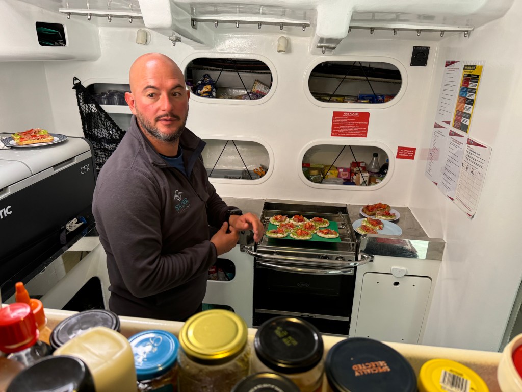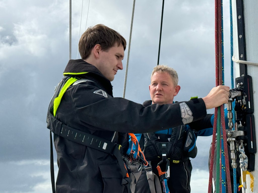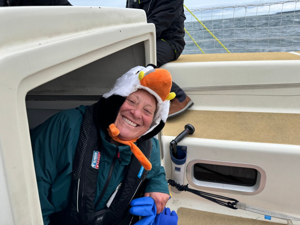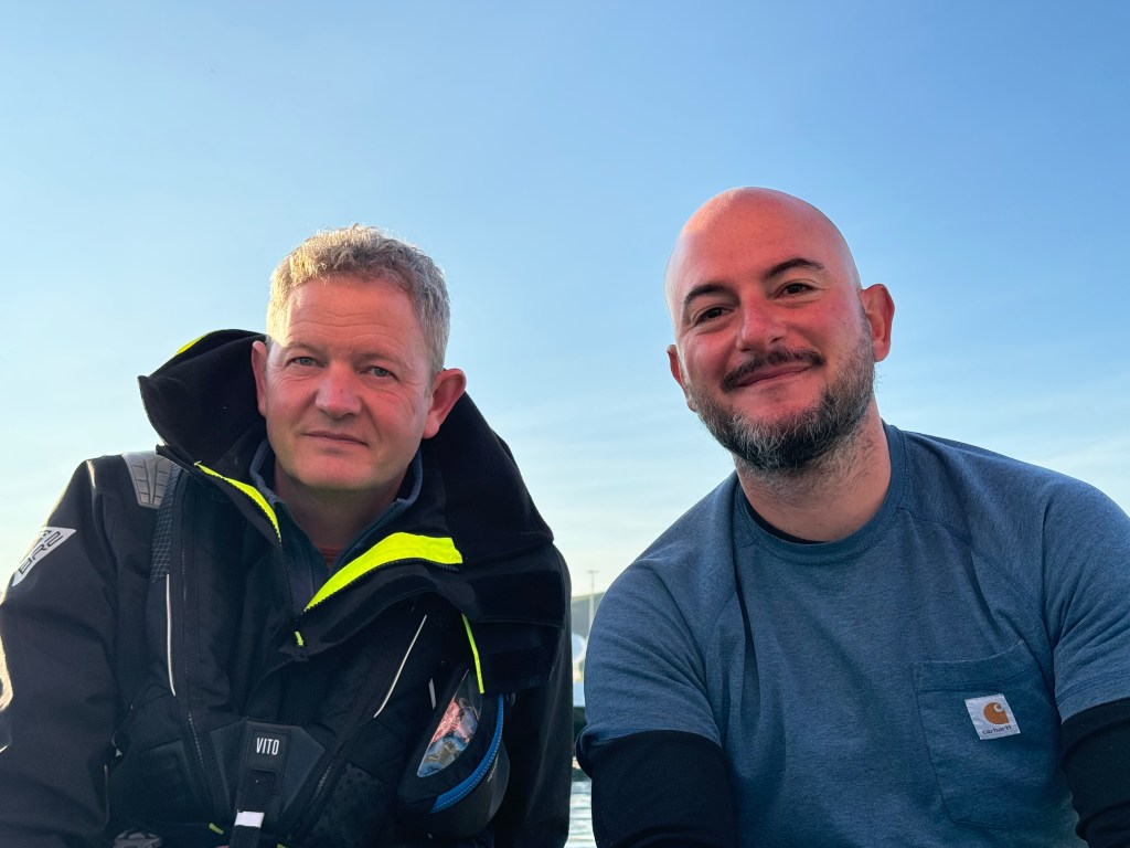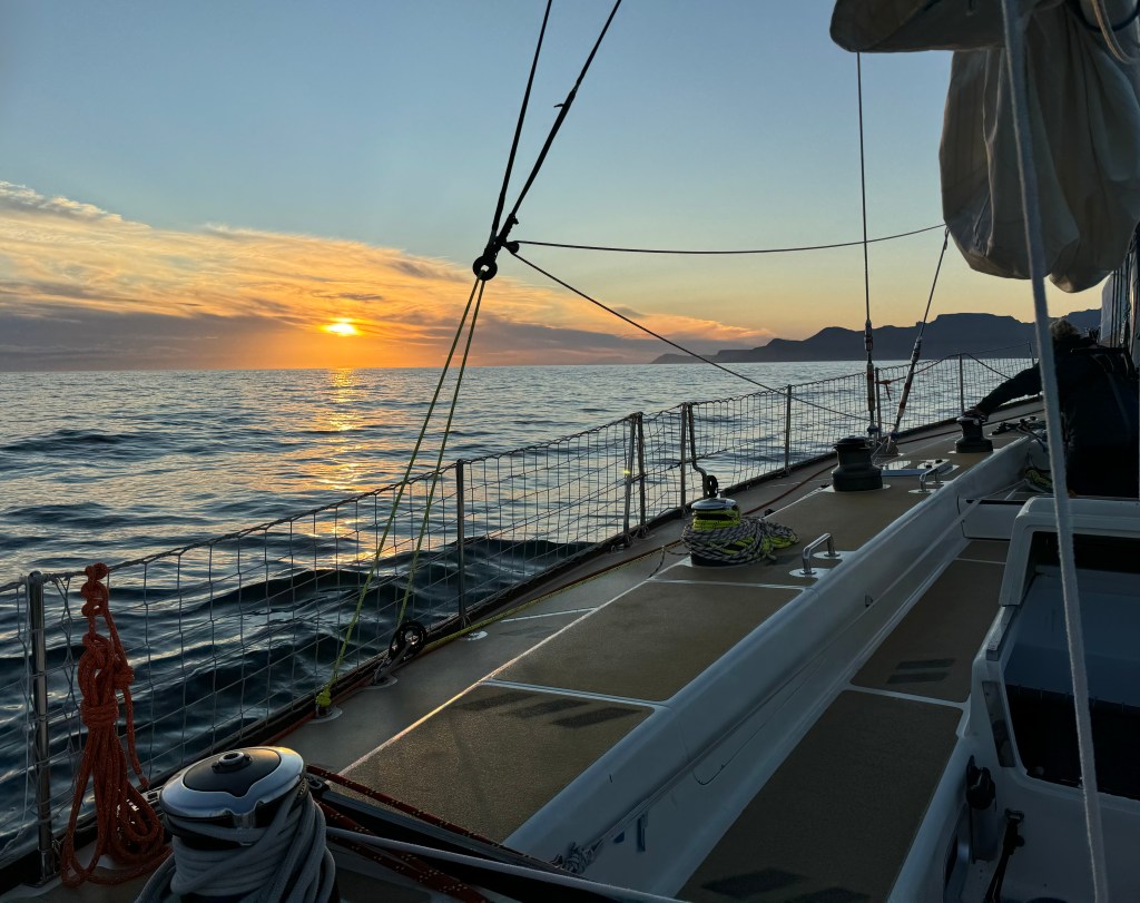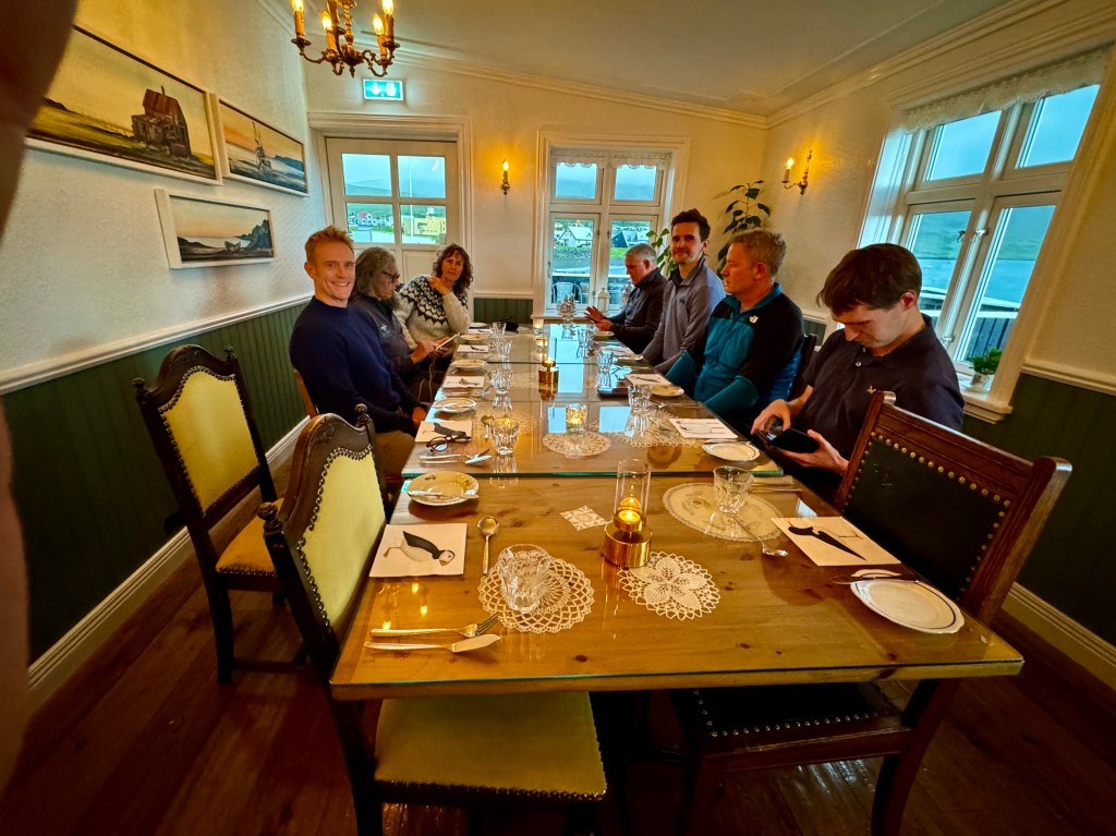 Around 6pm the new crew arrived. And our initial meeting point was the bar from the other night. A brief hello and it became obvious. A lot of Clipper trained crew this time and a kind of WT&C reunion were 4 out of 12 of us on this leg. After a quick pint we walked to the boat to have a brief introduction before heading out to crew dinner. Kitty was helping other on board because we had low tide and not a proper ladder to get on deck. And as she gave Mel a hand to jump over her new iPhone 15 went for a dive into the harbor. What a mess. We looked over the side but could not spot it. And with water temps at around 4 degrees diving without gear was not an option. Practical Wavy suggested that we would look for a rescue diver tomorrow. During the crew brief someone banged at the hull. It was a diver and he was happy to go in now. It was still bright outside. After 15 minutes or so the phone had been rescued and has been working ever since. Too bad that we could not trigger a photo as it was laying on the harbor bed.