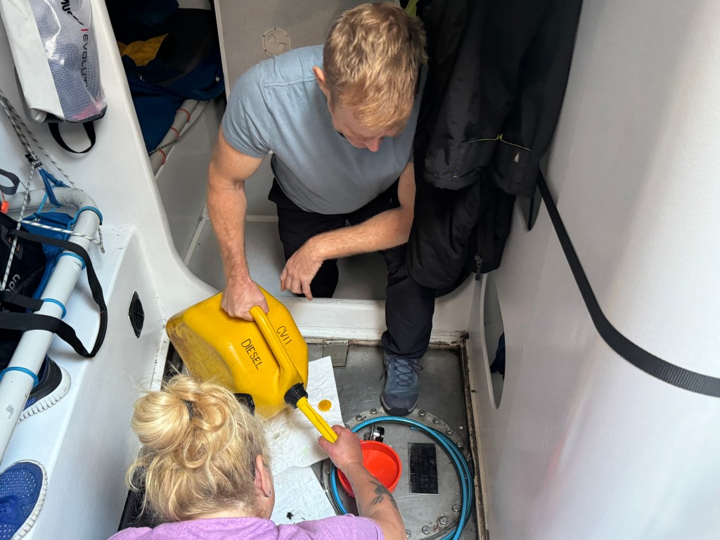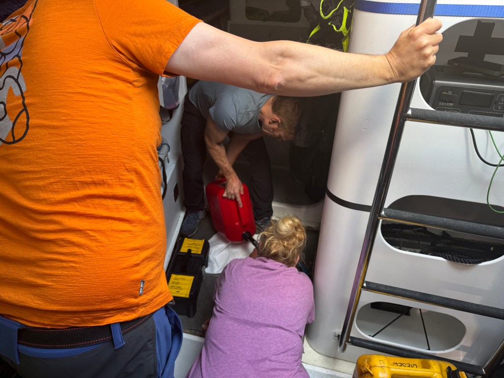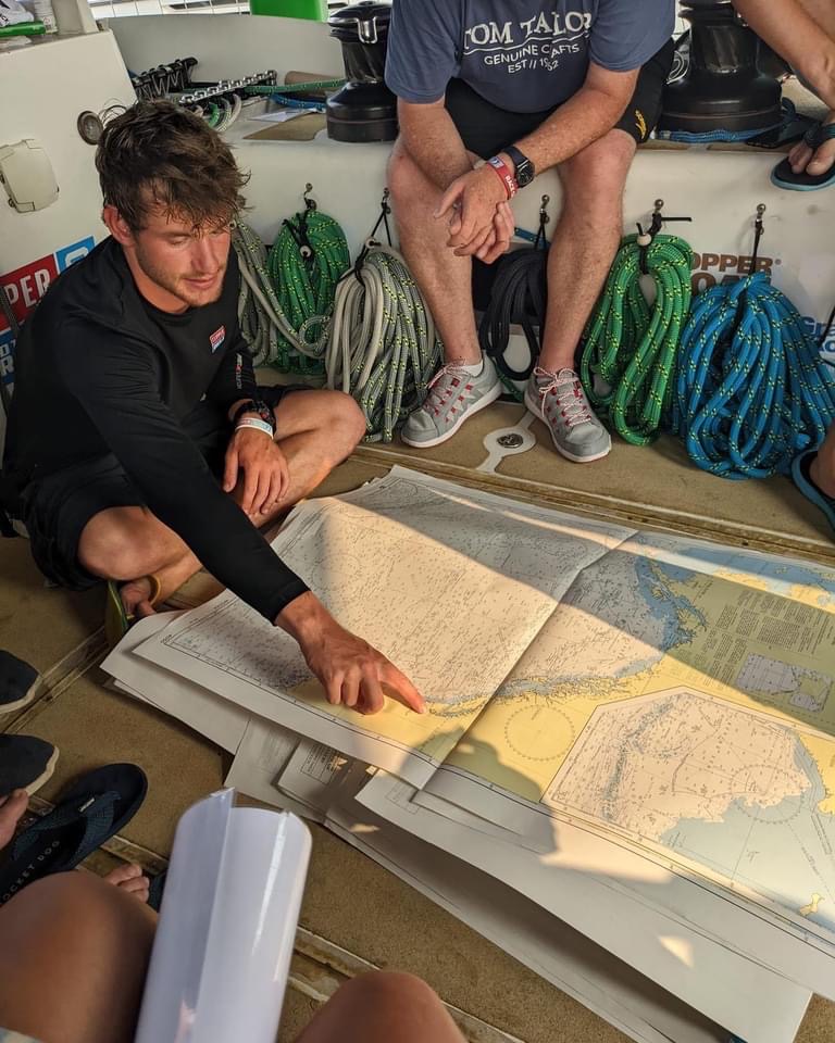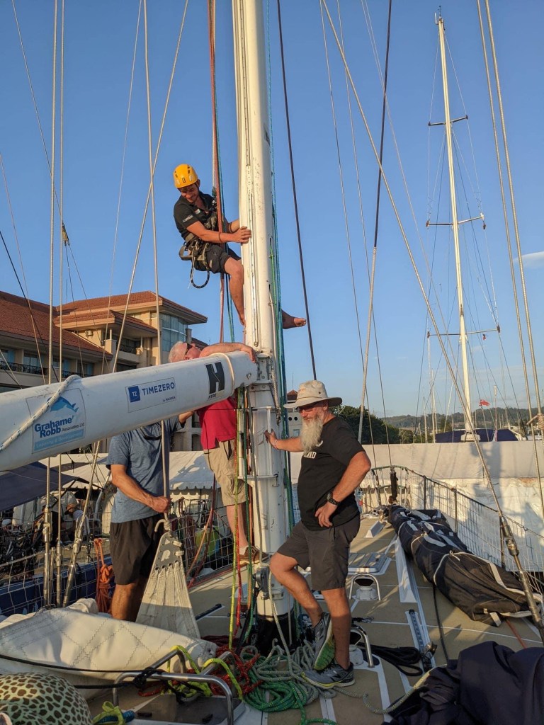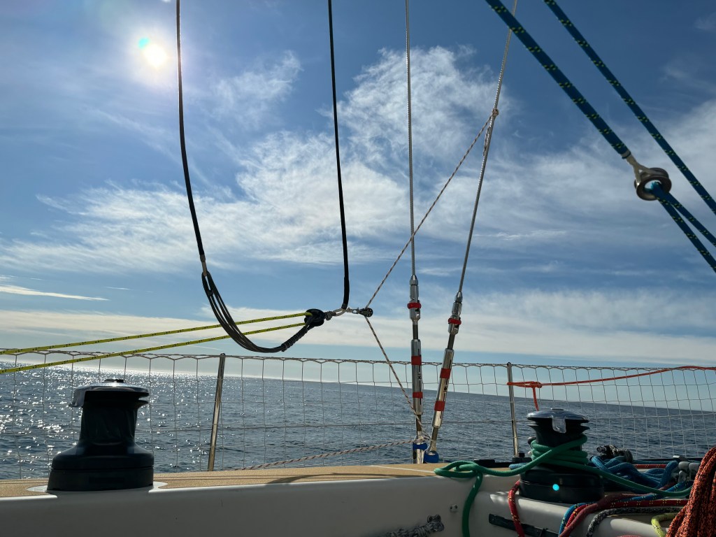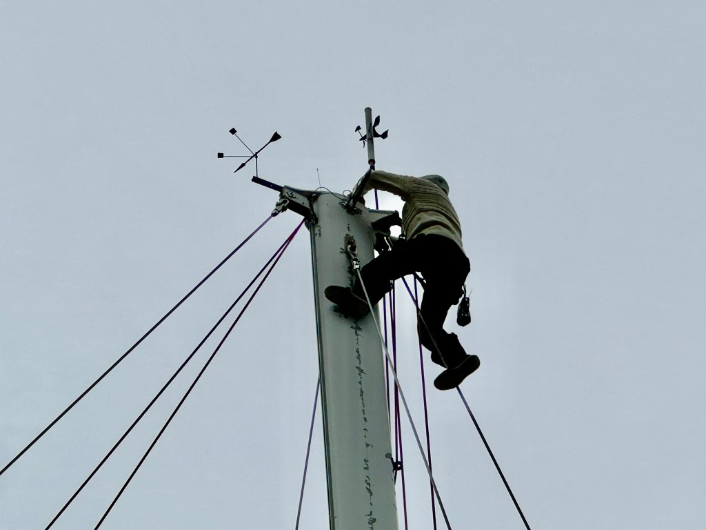 Around 6pm the new crew arrived. And our initial meeting point was the bar from the other night. A brief hello and it became obvious. A lot of Clipper trained crew this time and a kind of WT&C reunion were 4 out of 12 of us on this leg. After a quick pint we walked to the boat to have a brief introduction before heading out to crew dinner. Kitty was helping other on board because we had low tide and not a proper ladder to get on deck. And as she gave Mel a hand to jump over her new iPhone 15 went for a dive into the harbor. What a mess. We looked over the side but could not spot it. And with water temps at around 4 degrees diving without gear was not an option. Practical Wavy suggested that we would look for a rescue diver tomorrow. During the crew brief someone banged at the hull. It was a diver and he was happy to go in now. It was still bright outside. After 15 minutes or so the phone had been rescued and has been working ever since. Too bad that we could not trigger a photo as it was laying on the harbor bed.
