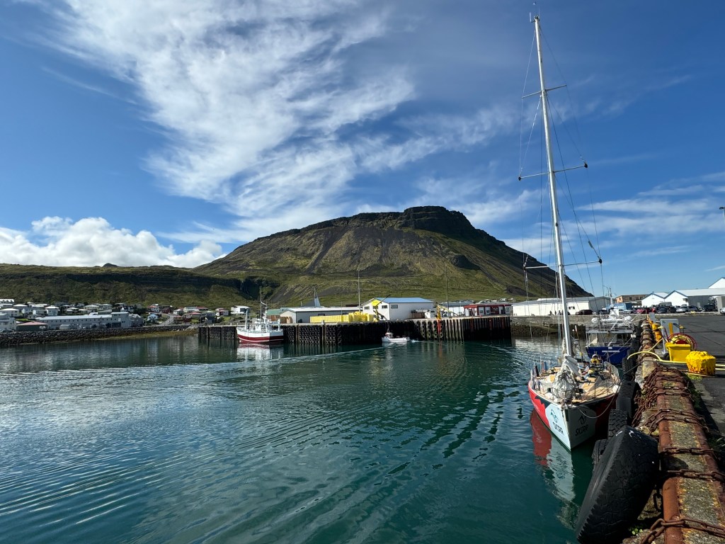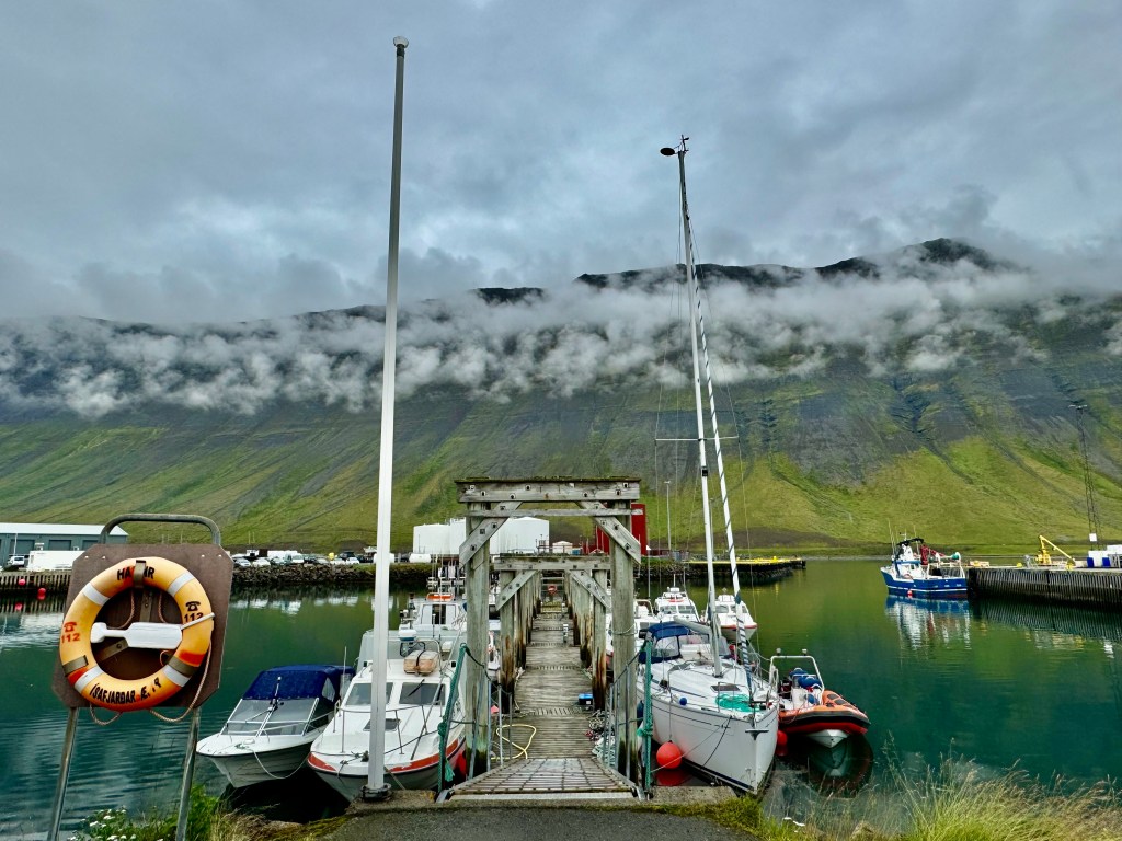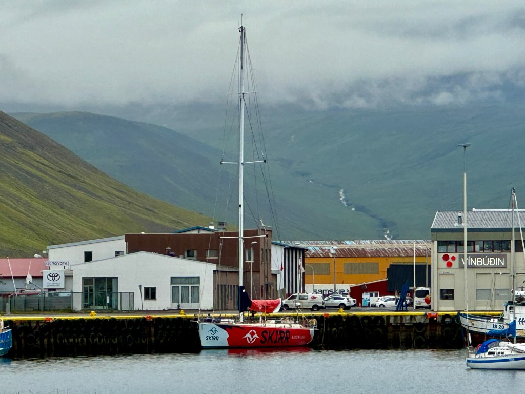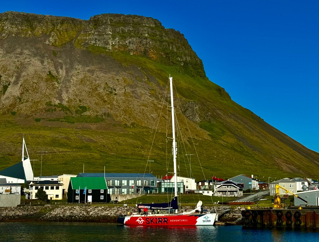Leg 4 was here now and in the next two days I was off the boat, had a hotel room in town to fix my back and offered help to prep the boat for leg 4 which included vitellin, fueling, water refill and so on. I was able to change my bunk in the ghetto to starboard last aft on top. This bunk is furthest way from the door but don’t get a wrong impression. It is right under the snake pit. So any work with halyeards, winches, sheets, vang, reefing lines or sail would be right in your ears. That is how sailboats are under deck – noisy and restless when in motion. And when the are alongside it is the trumpeting snoring concert at night that keeps you thinking why you are doing this to yourself. It is all we asked for – sailing adventure – away from the ordinary. I don’t have a lot to report because my touristic activities were close to none for the simple reason that Isafjördur is over swamped by cruise line tourists every day. In the summer season there are about two cruise lines a day. It is hard to believe that a local society can deal with it. But that is how they make their living in the season which is short. I spent one and a half day with office work and helped out on the boat during the rest of my time.