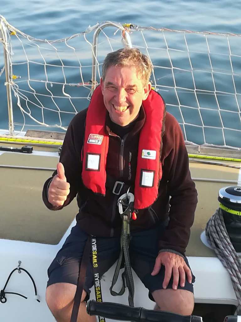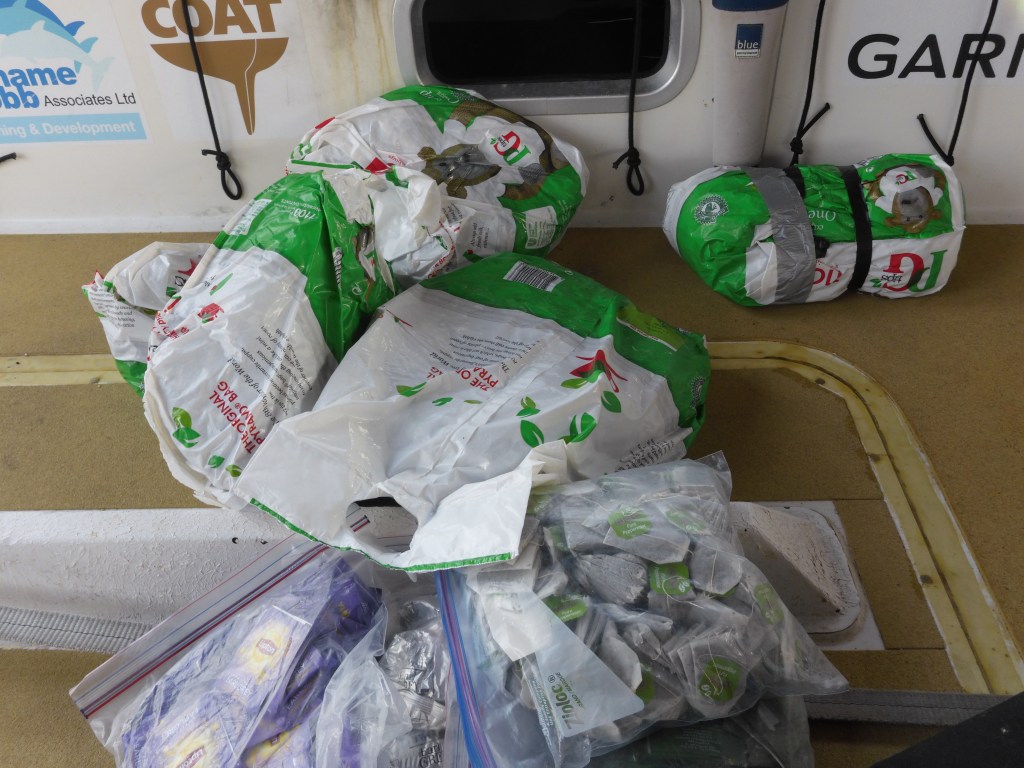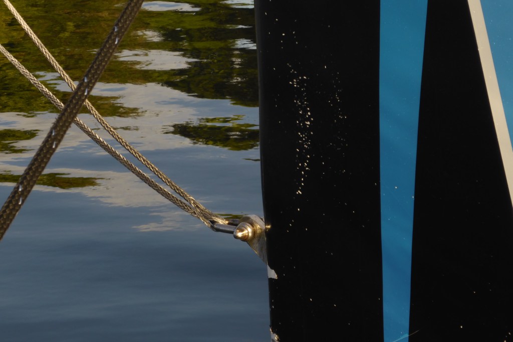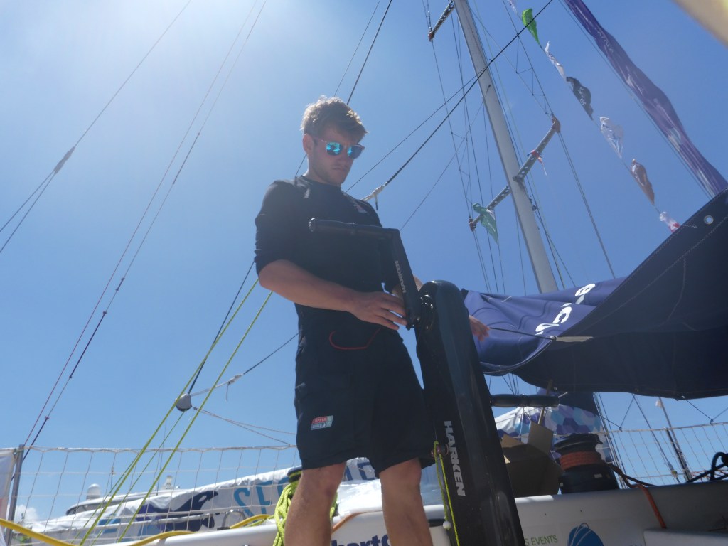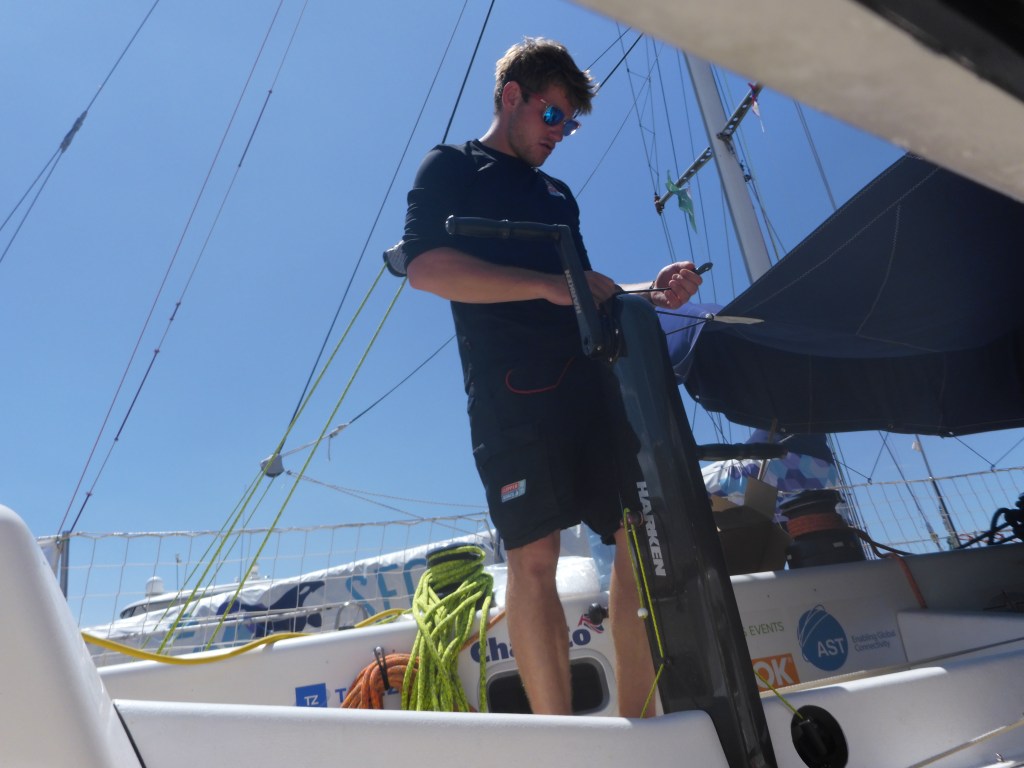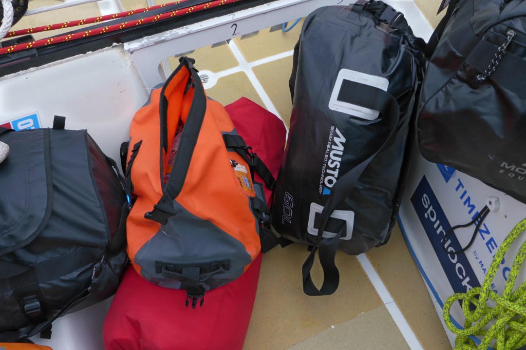 But before we start it was time to do some work. Boats always tend to ask for a lot of work to stay in shape and offer a safe and sound experience to its crew. Theoretically the newbies were not yet on duty but no doubt we joined in for the work because there was enough to do. Finishing deep clean, starting important repairs on board and in the rigg and repairing sails so that we would get the best out of them as we go along. It was a 9am call and I managed to be late on board. What an embarrassment. The briefing what should be done was almost finished when I joined. The first of my task I stepped in was helping Kaz to empty the lazarette which basically means to get the trash out of the boat. It is not the best of the jobs because it is „fruity“ down there as the boaties tend to say. the proper translation for sure is – it stinks. Anyway it had to be done and at the end loads of double bagged black bags are piled up on the pontoon, some of them partially ripped. Gareth became our trash transport officer (TTO) and carried out he logistics to the trash pit.