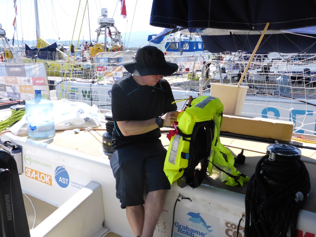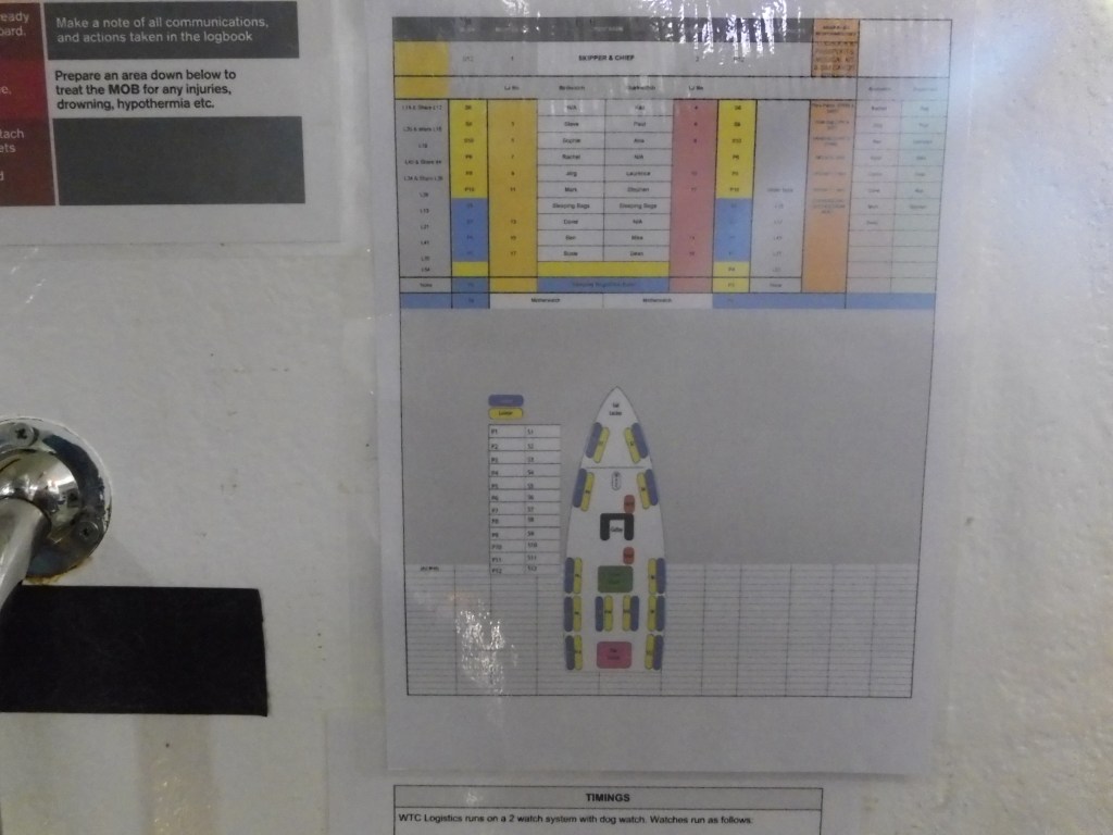After we checked in yesterday and we got our crew brief about the new route and arrangement we became so to speak official member of the team and crew. Our passports were taken away at registration. Now there is no hiding and running away. Skippers meeting at 09:00 am sharp. And as I cam late the day before I made damn sure that I would be on time. And so it was, quick breakfast and an early walk to the club brought me onto the boat a quarter to nine. Big hello of those who were already there. At nine we were all complete and Rich took over. First of all we discussed the allocation to watches. Rachel, Ben, Susie (all three round the worlders), Mark, David, Sophie and Steven would on my watch called Birdwatch. Also all the bunks got allocated. I am in Bunk number 8 on the Portside. It is a low bunk and it is fairly far aft. That means it will be OK in heavy weather, OK to get in and out and most importantly to stay in. I am hot bunking with Laurance, our French round the worlders from Sharkwatch.
