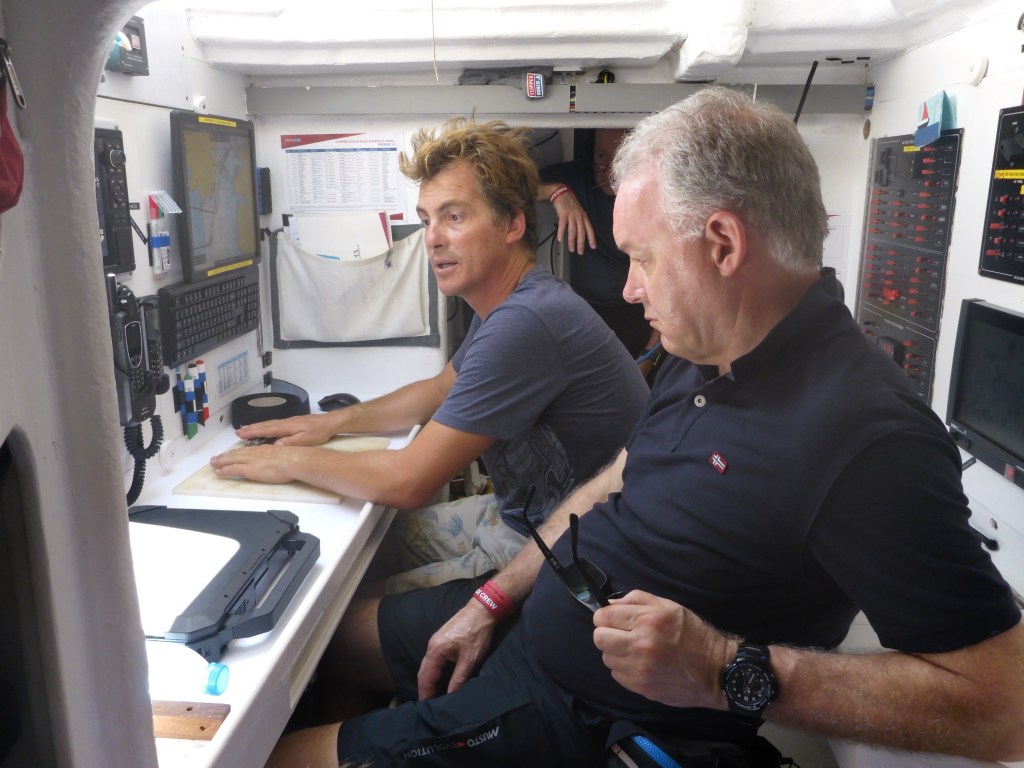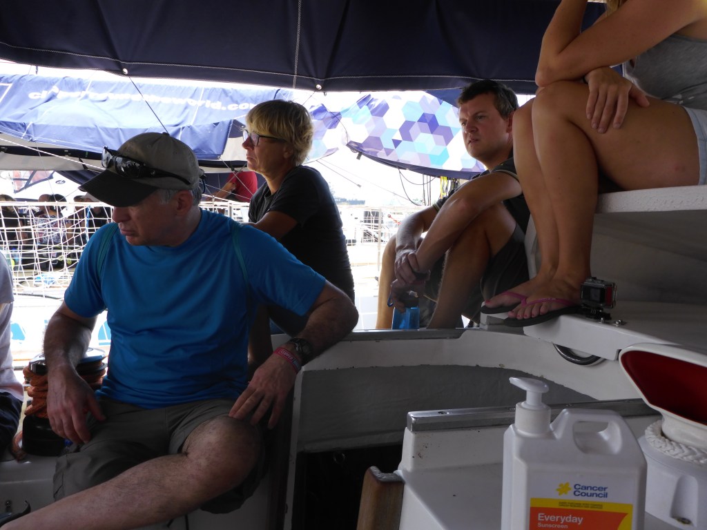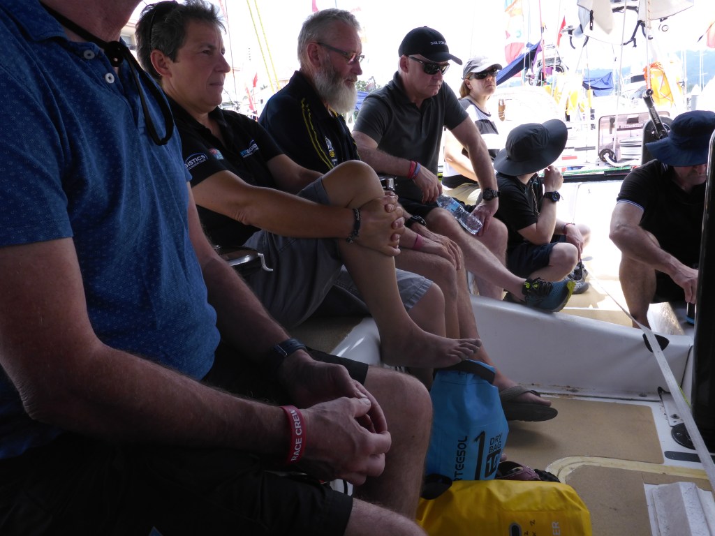 After that we walked the deck, went through all safety equipment incising the three life rafts, the Danboy and the 4 horseshoes on board. We talked about the use of jackstays, the does and do not, the safety teacher and the strong points on board. It was a serious but casual training and briefing. We really started to melt on deck because it was hot, hot, hot. In the morning the air almost did not move.