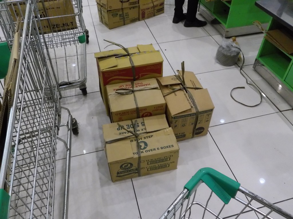 Supplies were packed in boxes and a taxi took us home to the marina.