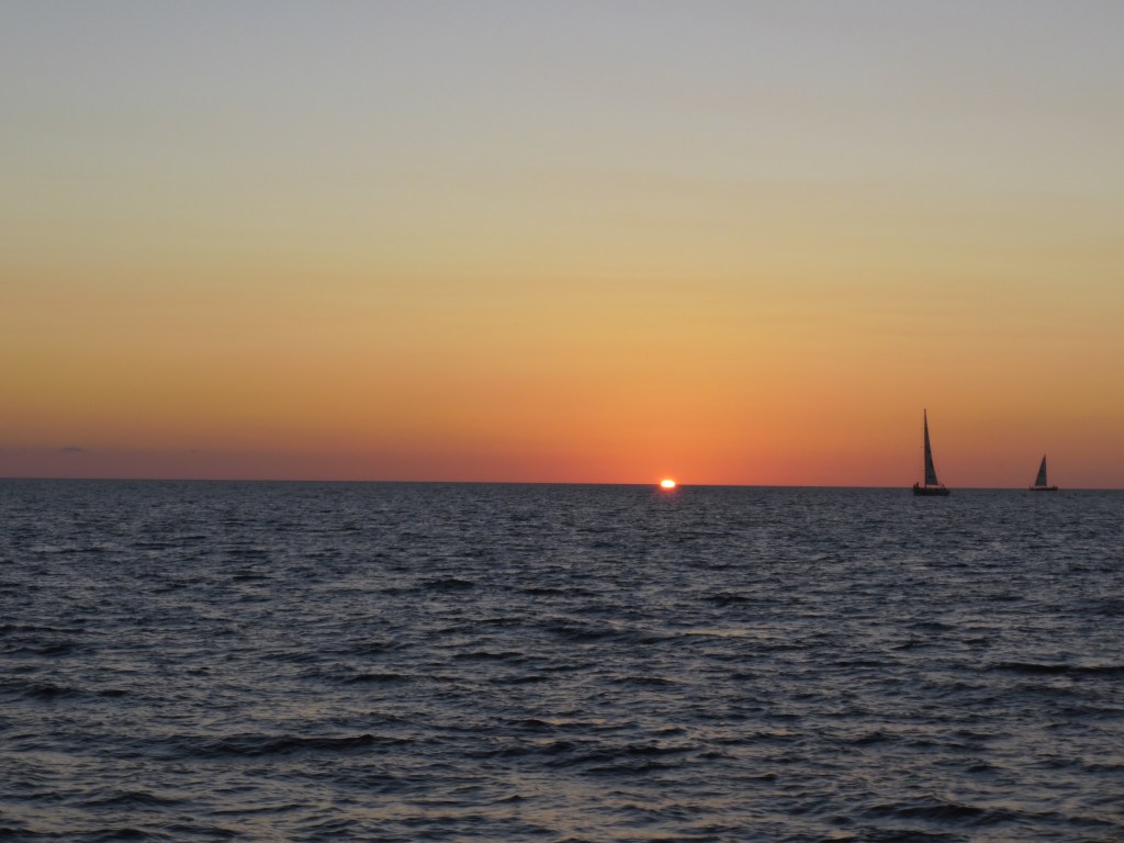 We rearranged the supplies in the galley and repacked all other stuff. Under one coffin bunk we found 10 blocks of „cheese“ smelly like socks that had been worn for a month. Obviously we thought except for the odor that this had no value. It was fun to look at PG tips supplies. 6000 bags on board. For us 17 this is a supply for 137 days. Hopefully we will not be out there for so long. Anyway the supplies were all put on board for a good reason and the number one risk for a victualler is to get killed because the boat runs out of Pringles, Nutella, coffee or tea. It became late but we got the job done. At least we believe where stuff is and have an idea of supplies. Tomorrow we have to run for four more items and than we will see how this works out. I am sure the crew is preparing already the plank for us two. Just joking. The day ended peaceful with a nice sunset. One day of prep to go and we will be in business – finally sailing.