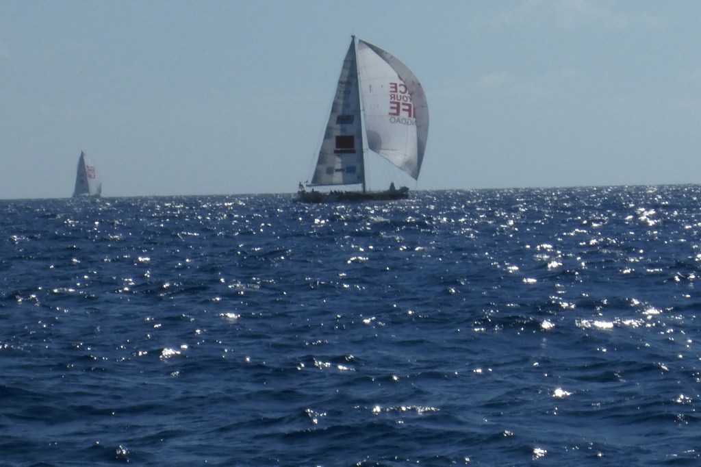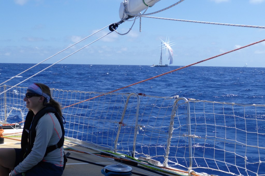 We are currently 200 nm West of Lucon island. At is night and the sky is currently moonless and full of stars. Amazing sky. We had a „great“ start of the day with 12 knots of wind and a battle for first, second and third place. You might have seen on the tracker how that ended. Was a bit nerve wrecking. Later the day the wind died on us and we were bouncing around in a dead and plain see. The sun was glowing. The crew is in a good mood although I saw it this morning. The little green monster came jumping over several 3 meter waves. It sneaked down the companion way, grabbed two guys by the throat and shook them around until they turned green. Everybody can imagine what followed. These poor guys turned green and gave it to the fishes. One recovered already but the other one still makes the boat lighter. We have 53 minutes to our watch. And at 2 am we will back. The boat is bouncing around, still shaking in a Dead Sea. Hopefully the day tomorrow will bring some wind.