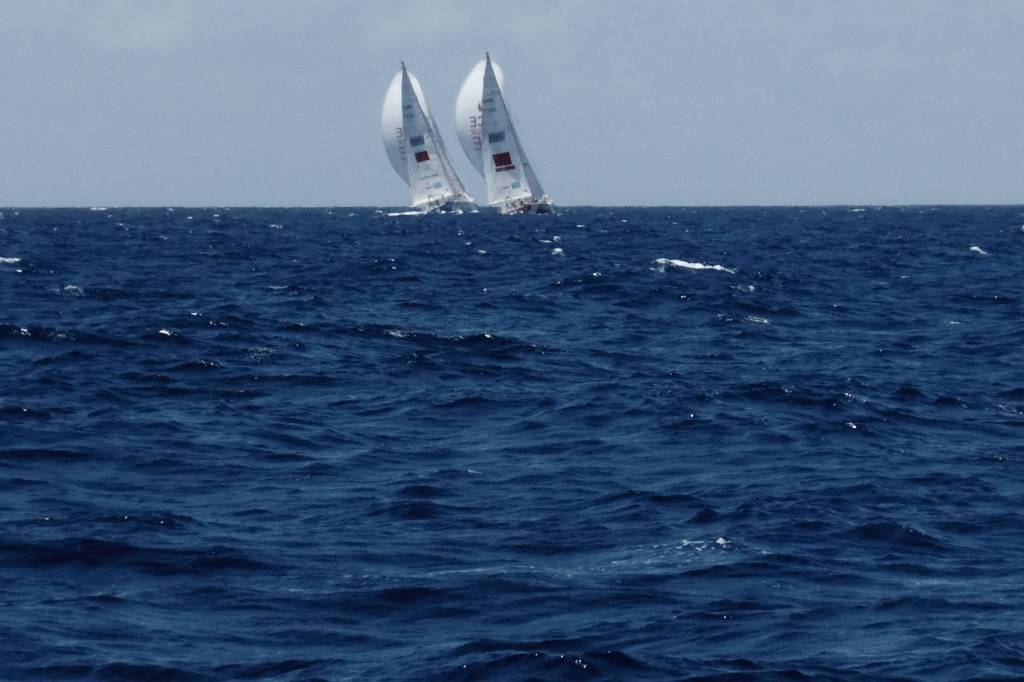 The last 24 hours were difficult. Yesterday Ordnung great sailing and as reported the wind died. The first night shift logged 2 nm in 4 hours. No wind. We started our watch and there was no wind either. Close to midnight we felt a touch of wind on our sweaty faces. Yes. Windseeker went up. It took us less than 5 minutes. We started to move again. 4.6 knots wind 2.3 knots of speed. Yes. after 8 hours dead locked we were moving away from Halong and Dare to Lead. They pulled their Seekers but we were faster. Wind increased to 7 knots. Decision was taken to pull Code 1. And as you must drop the Seeker first we lost speed giving Dare to Lead and Halong the chance to pass by. Jesus! We continued due North and Halong went way East. We passed what we got to the next watch. Four hours later no wind. Halong stayed with the Seeker and used the apparent wind to its advantage. Next morning was payday for them. East was best. Wind veered to the Northeast and easterly boats had a great angle to the gate. We were West. Not the best. But we are fighting. Today great sailing under white sails. Perfect trim, very good speed and good pointing angle. I was allowed to helm from 16:00 local till 17:10 and took the opportunity to wrestle Zhuhai down. I love helming upwind boat to boat. It is not about technique l. It is a mind game. We entered this evening the third Ocean sprint. We battle on here and now. On our last 260 miles to Subic. We are all wet sweat everywhere. And I look like Rasterman with sticky hair in all direction. But I can tell you baby wipes are not too bad as shower replacement. Need to go to sleep. 1 hour 44 minutes left. Slept a total of four hours since we departed. Joerg from CV23 Black Betty in the South China Sea.